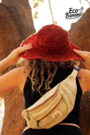 Banano de cañamo y lino tejido a telar color Crudo. Material vegano, comparable y natural.