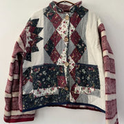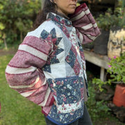 Chaqueta hecha de un cubre cama antiguo de invierno y frazada de lana.