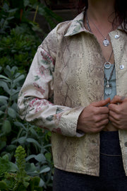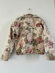 Chaqueta manga larga, hecha de distintos materiales: manteles gruesos, individuales y cortinas vintage