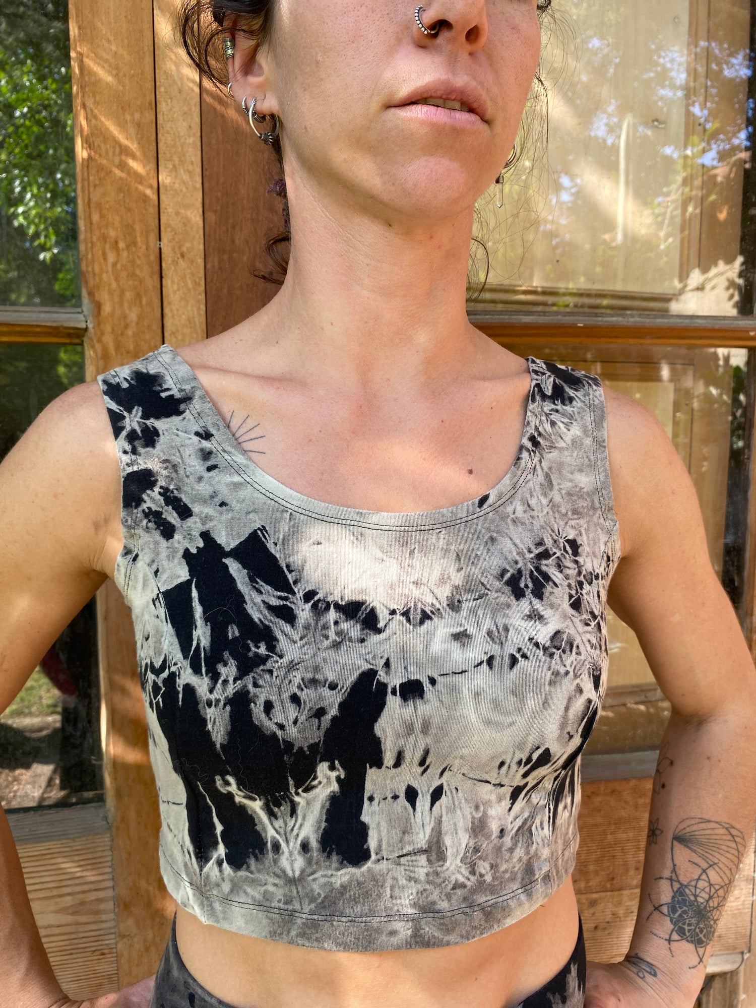 Peto o crop top ajustado con escote redondo. Algodón nacional, teñido a mano. Súper cómodo y lindo