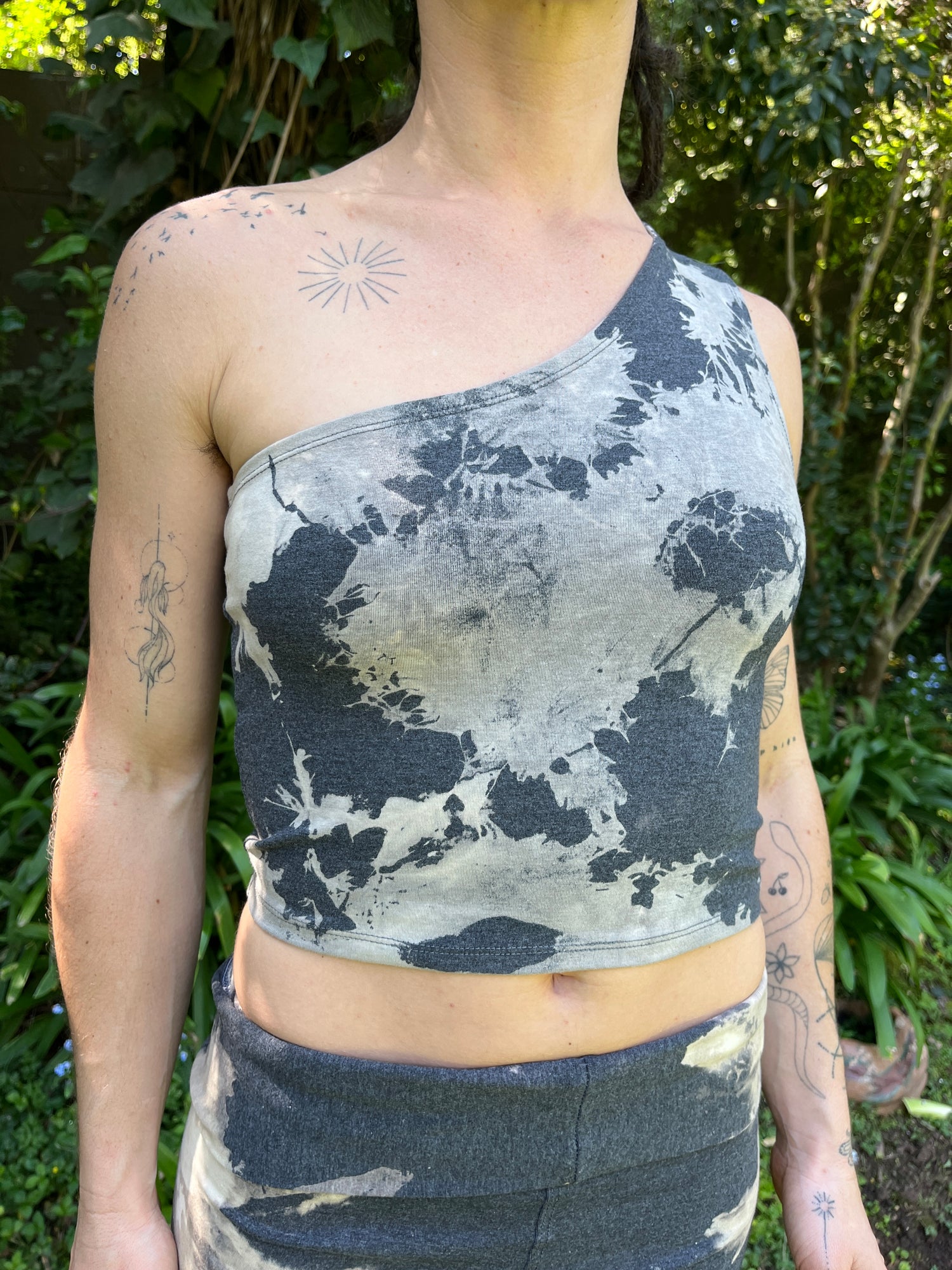 Crop top asimétrico. Algodón nacional, teñido a mano, super cómodo y lindo