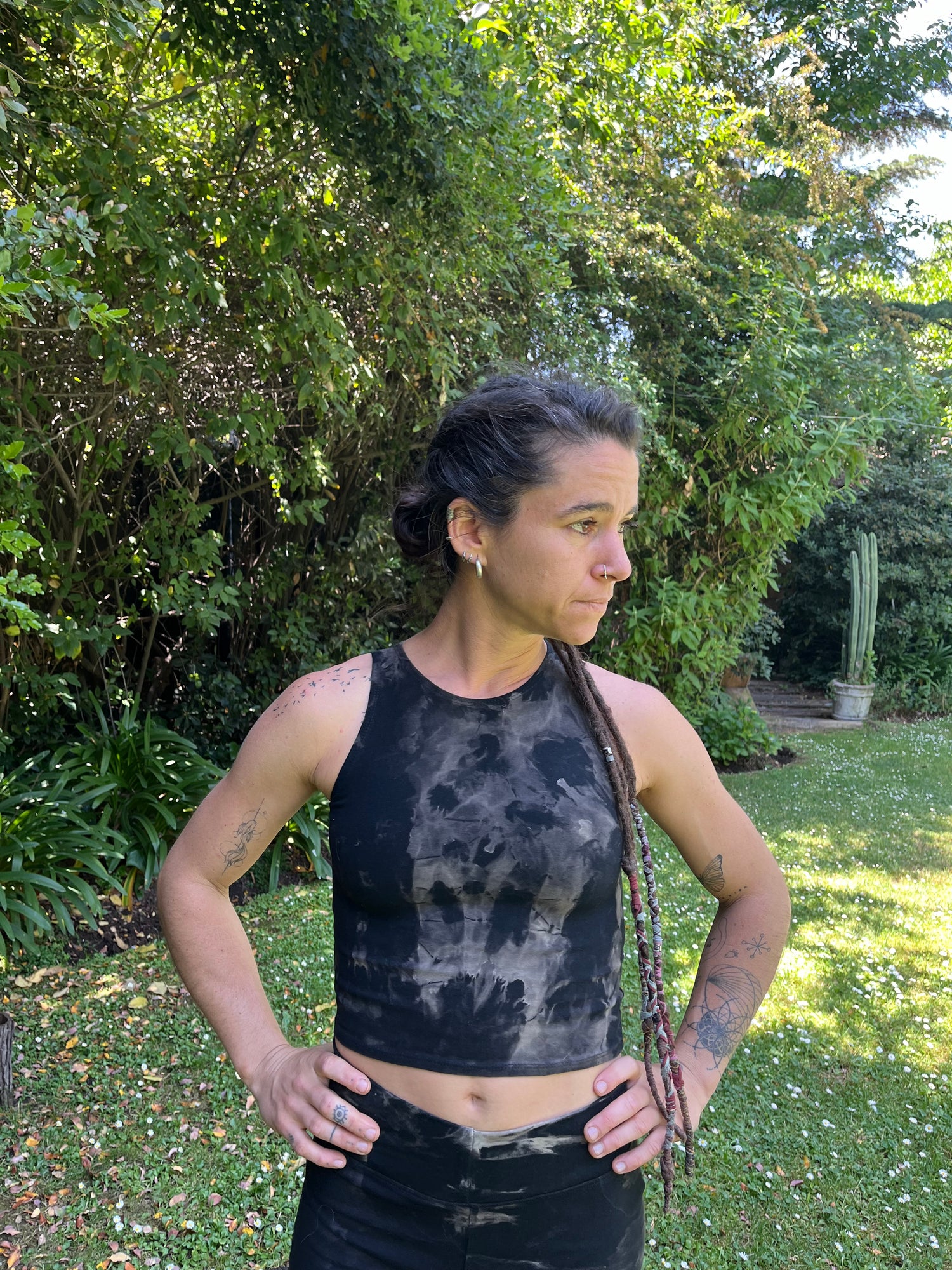 Top ajustado con escote alto. Algodón nacional, teñido a mano. Súper cómodo y lindo.
